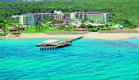 аэропорта г. Анталии, в 4 км от центра г. Сиде, на берегу моря.