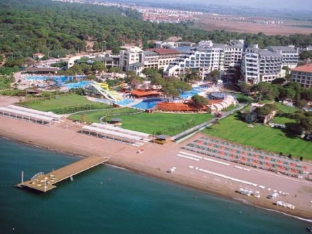 www.corneliaresort.com тел.: +(90-242)710-15-00 факс:+(90-242)715-25-05 Расположение: расположен в 35 км от аэропорта Анталия и в 45 км от центра Анталии, в 5 км от пос. Белек, на самом берегу моря. Отель: общая площадь 65000 м2. Отель состоит из одного 5-ти этажного корпуса - HOTEL и четырех 2-х этажных корпусов - VILLA. HOTEL: 223 стандартных номера (70% - sea side, макс 2+1 чел, 35 м2); 2 двухкомнатных family suites (sea side, 2 спальни с дверью, макс 4 чел, 65 м2); 11 двухуровневых dublex family suites (sea side, без балкона, спальня с twin bed, экстра-туалет, телевизор - на нижнем уровне; спальня без двери с french bed , телевизор, ванная комната - на верхнем уровне, макс 4 чел, 50 м2); 8 двухкомнатных deluxe suites (холл, спальня с дверью, 2 телевизора, ванная комната с джакузи, макс 4+1 чел, 90 м2); 2 трёхкомнатных Grand Deluxe Suites (холл, две спальни с дверьми, 2 ванные комнаты, джакузи, макс 4+1 чел, 120 м2). Один 3-х этажный корпус, разположенный в саду - Аnnex: 48 standard rooms (garden side, макс 2+1 чел, 35 м2). Четыре 2-х этажных корпуса - VILLA: 80 villa junior suites (все с видом на бассейн, холл, спальня без двери, ванная комната с джакузи и душевой кабиной, макс 2+1 чел, 50 м2). К оплате принимаются кредитные карты: Visa, Master, Euro. Размещение с животными: нет. Пляж: собственный, песчаный (длиной 118 м). Зонтики, шезлонги, матрасы - бесплатно. Пляжные полотенца - бесплатно. У бассейна: зонтики, шезлонги, матрасы - бесплатно. Номер: * ванна * фен * центральный кондиционер * телевизор (российский канал) * телефон * мини-бар (пополняется ежедневно) * сейф (в номере - бесплатно) * ковровое покрытие (кроме Villa) * балкон (не везде) * ковровое покрытие * уборка номера - ежедневно * смена белья 3 раза в неделю Территория: * основной ресторан Cornelius (есть диетическое питание) * 5 a'la carte ресторанов (посещение ресторанов осуществляется по предварительной резервации без ограничения количества посещений). В рестораны Средиземноморской, Французской, Дальневосточной кухни дети до 7 лет не допускаются. В Итальянском и Турецком ресторанах нет возрастных ограничений для детей. * 8 баров * 2 открытых бассейна * закрытый бассейн * аквапарк * кабинет врача (2 часа в день) * парикмахерская * конференц-зал (на 1700 чел) * 5 магазинов * интернет-кафе (платно) * 3 водные горки * 2 амфитеатра (закрытый и открытый) * WI-FI интернет охватывает большую часть территории (бесплатно) Для детей: * детский бассейн * детская площадка * детский мир Cornie * мини-клуб (с 4 до 12 лет) в мини-клубе деткам предложат заняться рисованием, изготовлением поделок, лепкой из пластелина, раскрашиванием лиц, приготовлением пиццы, салатов и печенья. Также для развлечения наших маленьких гостей мы предлагаем бассейн с шариками, машинки с радиоуправлением, аэрохоккей и игровые приставки. * мини-диско * няня (платно) РАЗВЛЕЧЕНИЕ И СПОРТ Бесплатно: * тренажерный зал (08:00-19:00) * аэробика, аквааэробика, степ-аэробика, стречинг * сауна * турецкая баня * джакузи * шоу-программы * вечеринки (вечеринка ужасов, пижама-party, чёрно-белая вечеринка и т.п.) * дискотека (23:00 - 02:00) * волейбол на пляже * баскетбол * мини-футбол * 3 теннисных корта с тартановым покрытием (днем) * настольный теннис * дартс * водные безмоторные виды спорта * дискотека Salmakis Disco (23:30-02:30) Платно: * массаж * прокат теннисных ракеток и мячей * освещение теннисных кортов (вечером) * курсы подводного плавания * водные моторные виды спорта * боулинг (2 дорожки) * бильярд * интернет-кафе * гольф (к услугам гостей гольф-поле, спроектированное многократным чемпионом мира по гольф
