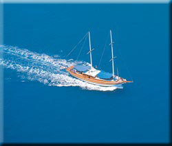Яхта (гюлета) отплывает из порта Кемера и направляется в сторону