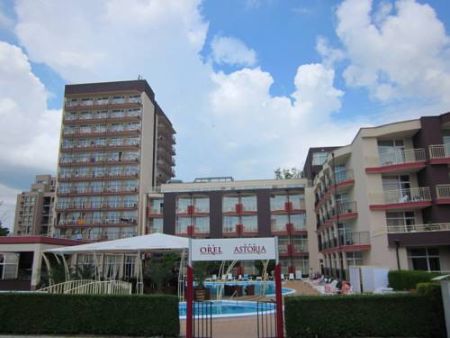 аэропорта г. Бургас, в 200 м от центра курорта Солнечный Берег, в 20 м от пляжа.