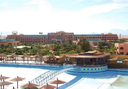 аэропорта Хургады, в 14 км от центра Хургады, на самом берегу моря.